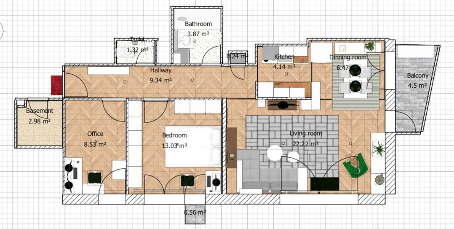 Stanovanju pripada tudi shramba, ki je praktična, saj se nahaja v istem nadstropju poleg stanovanja.
