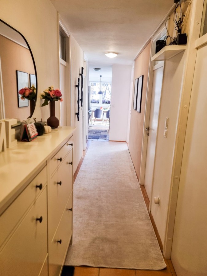 Tlorisna razporeditev je izredno praktična, saj imate iz hodnika vhod v vse prostore in sicer si sledijo: