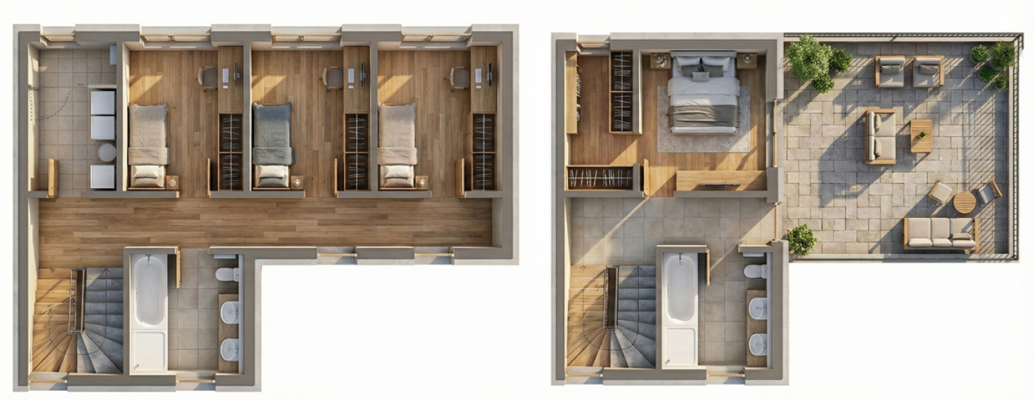 Na voljo je več enot z dvema različnima tipoma tlorisa.