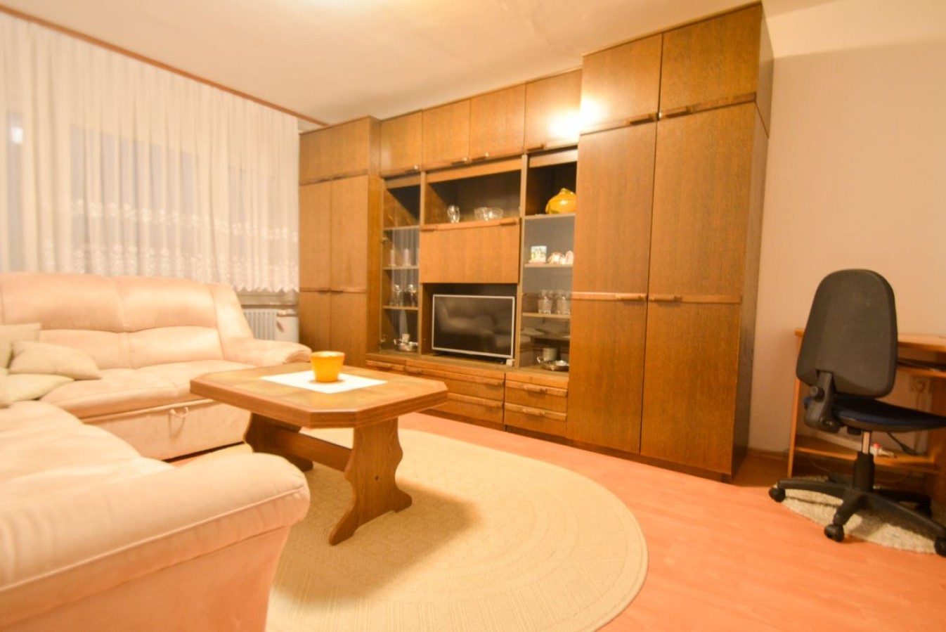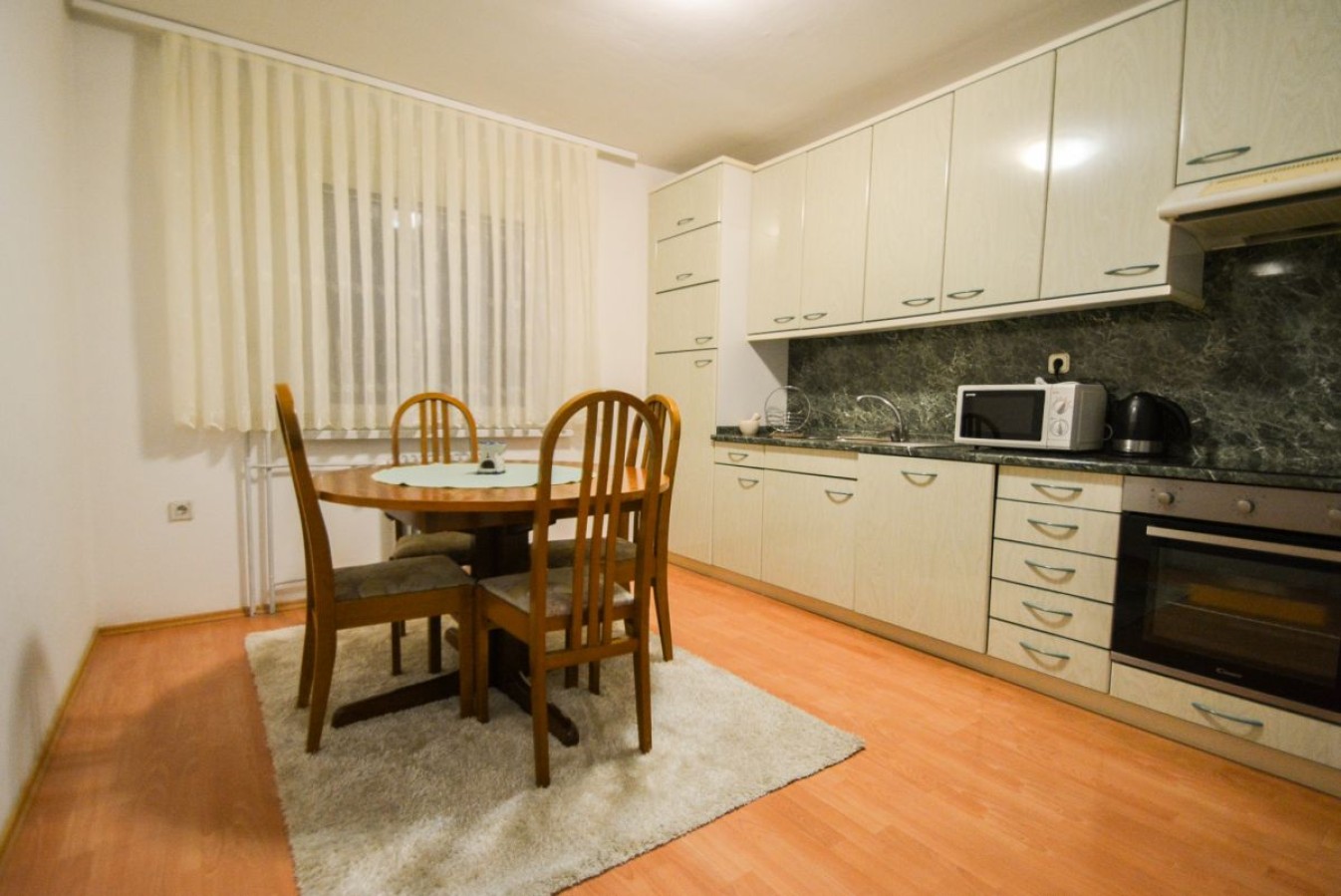 Razporeditev: Stanovanje obsega predprostor oziroma hodnik, ki nas vodi do vseh prostorov in sicer na desni strani do ločenega WC-ja, kopalnice, naravnost do kuhinje s prehodom v dnevno sobo z izhodom na balkon. Dostop v dnevno sobo je možen tudi iz hodnika. Na levi strani pa se nahaja spalnica z izhodom na balkon, ter otroška soba.