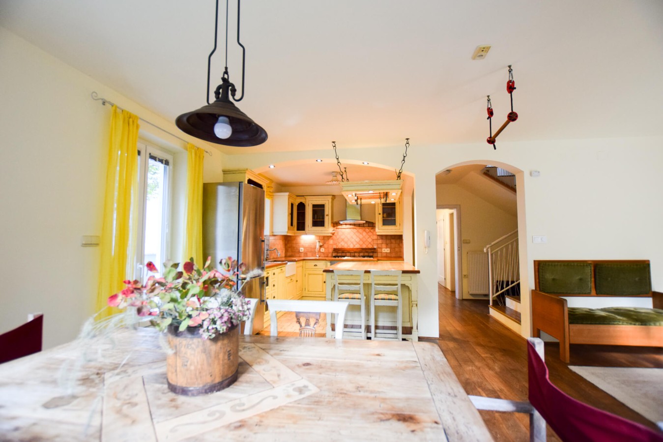 Hiša je opremljena s kvalitetnim masivnim pohištvom v vseh prostorih.