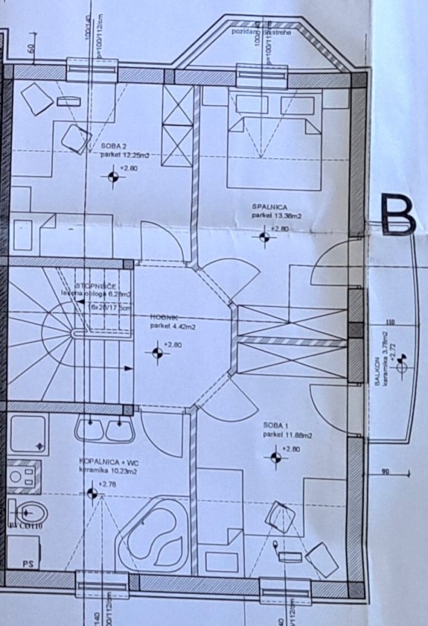 Nadstropje: spalnica, 2 otroški sobi, kopalnica