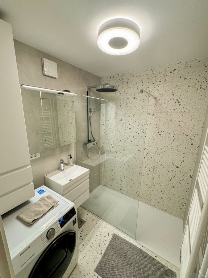 V letu 2024 je bila v celoti prenovljena kopalnica ter ločen WC. V kuhinji je bila vodovodna in električna inštalacija prenovljena v letu 2019.