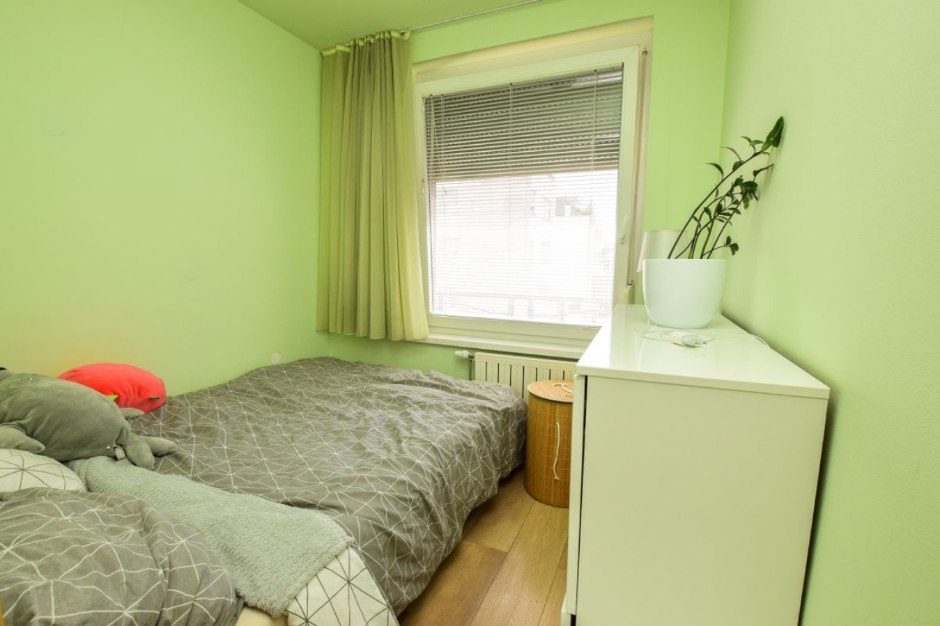 Razporeditev: Ob vstopu v stanovanje se nahaja predprostor, kopalnica. Nato imate naprej na levi strani kuhinjo z jedilnico, ločeno spalnico ter na desni strani dnevno-bivalni prostor.